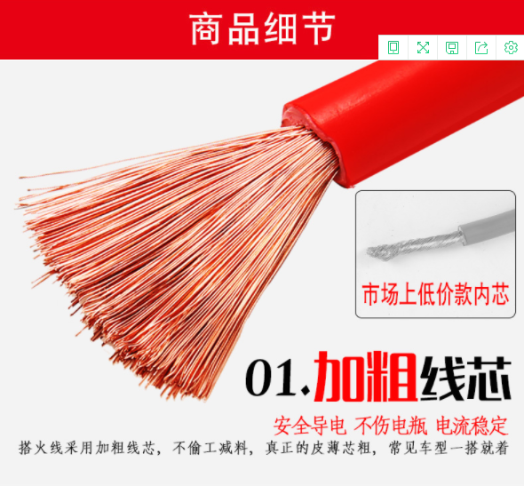 产品名称:汽车电瓶线搭火线纯铜 3M加粗2500A 汽车绑电线 ZCDHX01